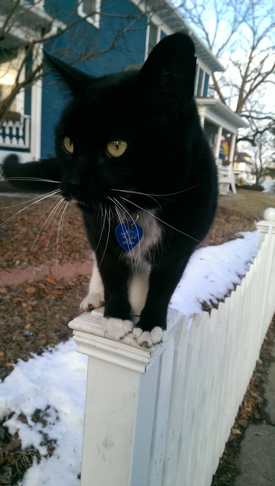Would anyone other than a CAT LADY patrol the streets this way? No. No they wouldn’t. So, for your viewing pleasure, here’s Button looking totally adorable and climbing a fence post.