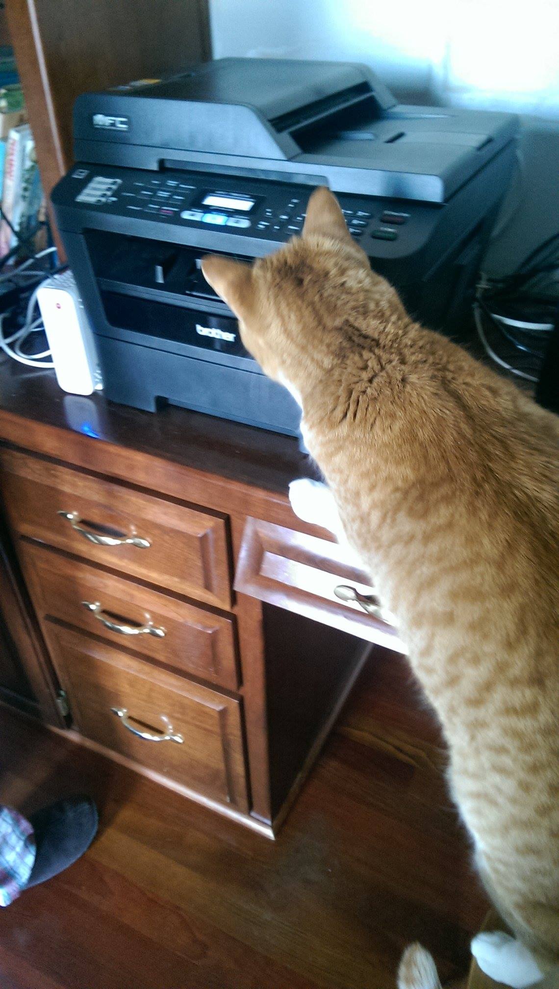 Here’s a photo of The Charging Ollie, lover of printers and fireplaces, who doesn’t do much charging after all.