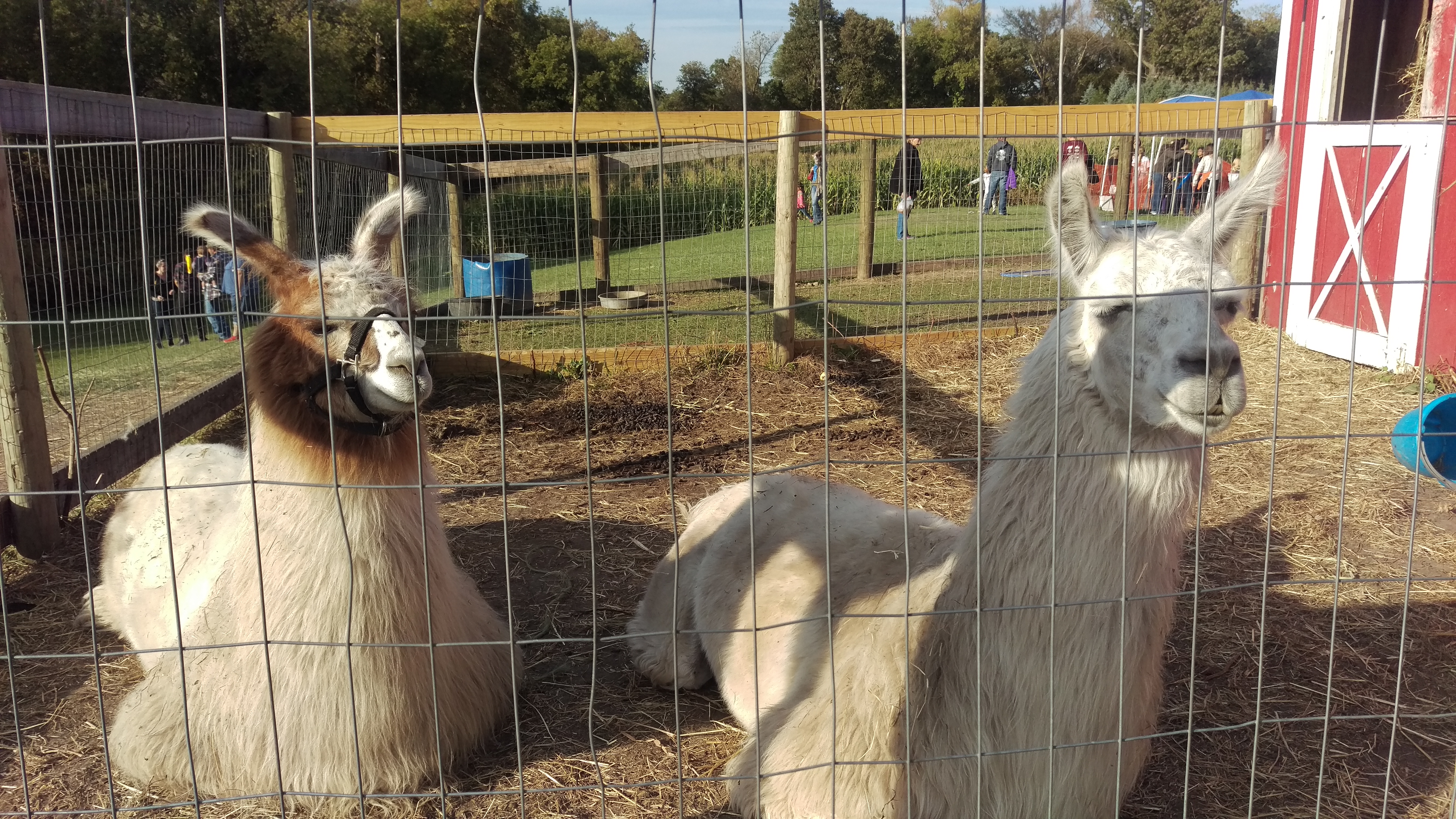 First and foremost, the petting zoo. None of the animals were close enough to the fence to be pet. While most of them were silently protesting the touch of germy children, one llama in particular was offended by mine and Briana’s presence.